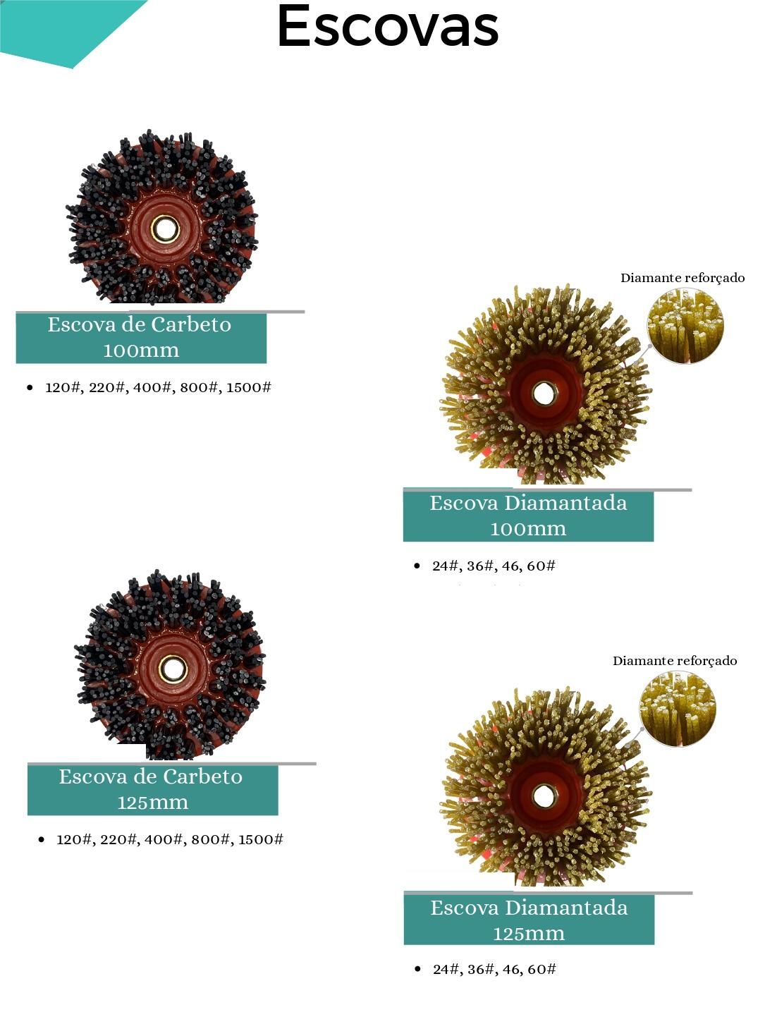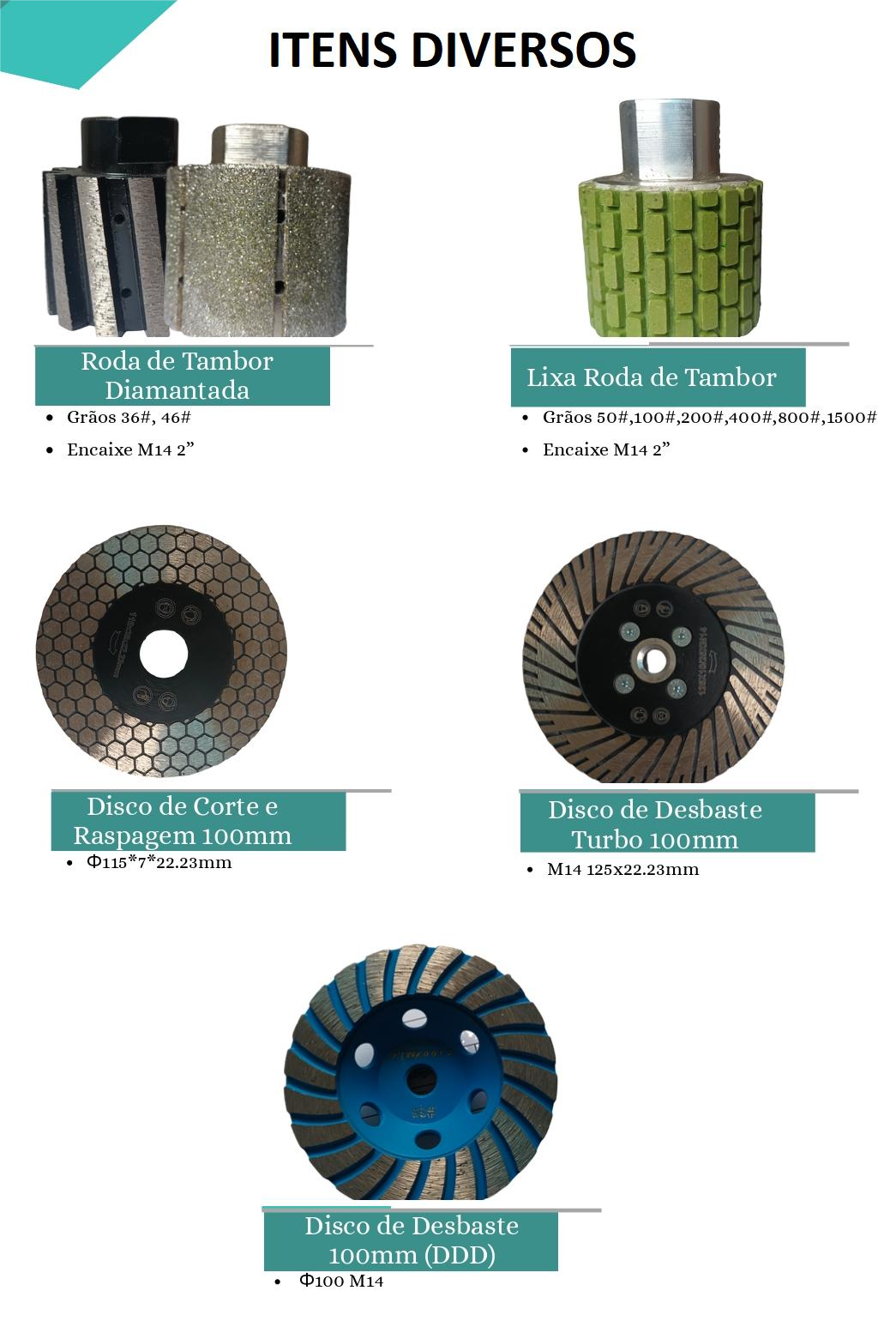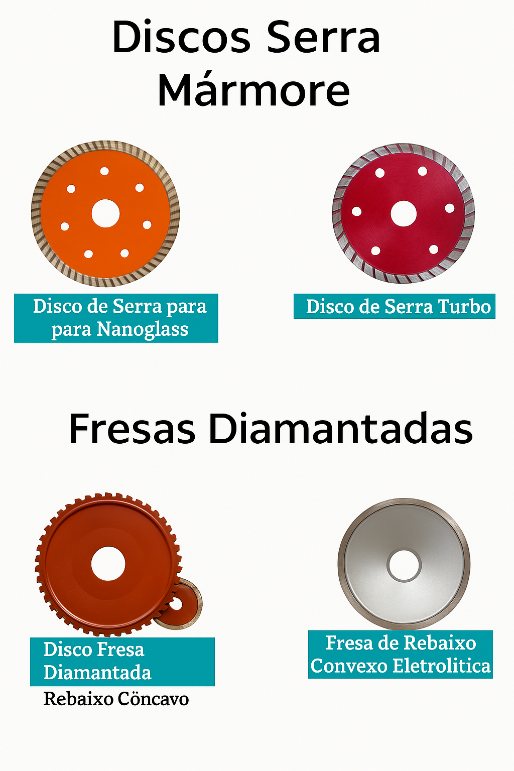 Discos de Mármore e Fresas Diamantadas — ideais para acabamentos de alta qualidade.