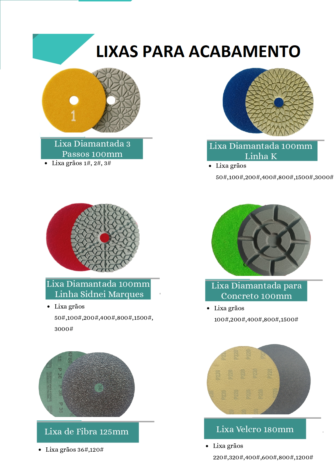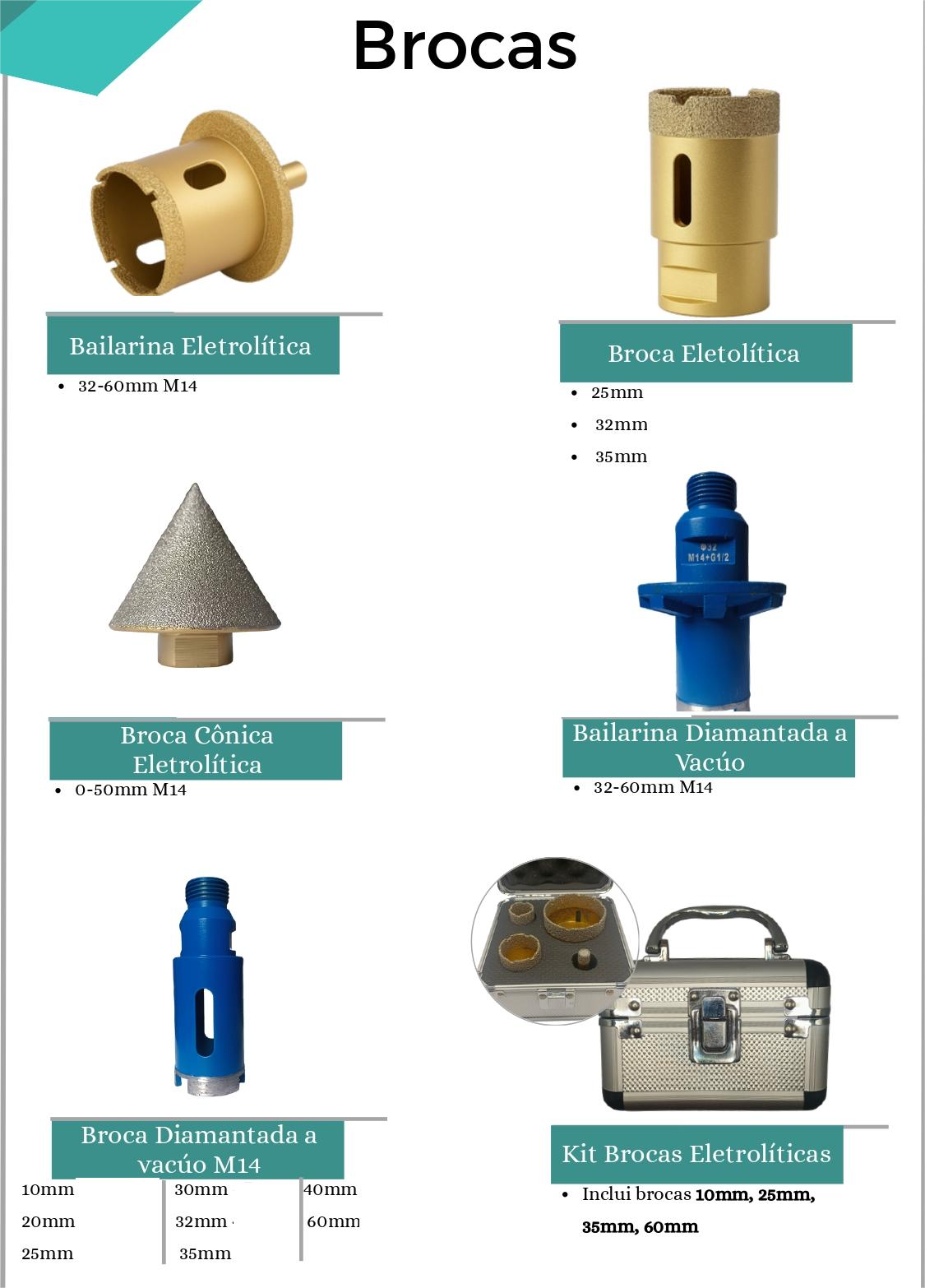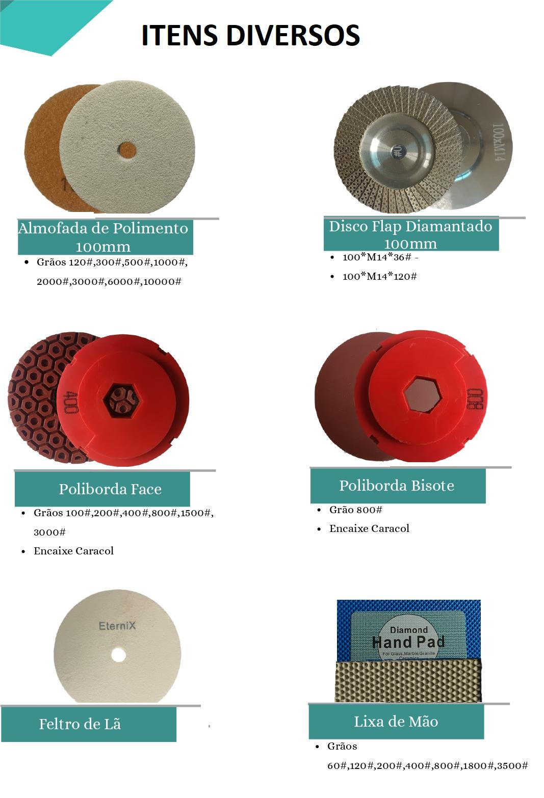 Discos de Mármore e Fresas Diamantadas — ideais para acabamentos de alta qualidade.
